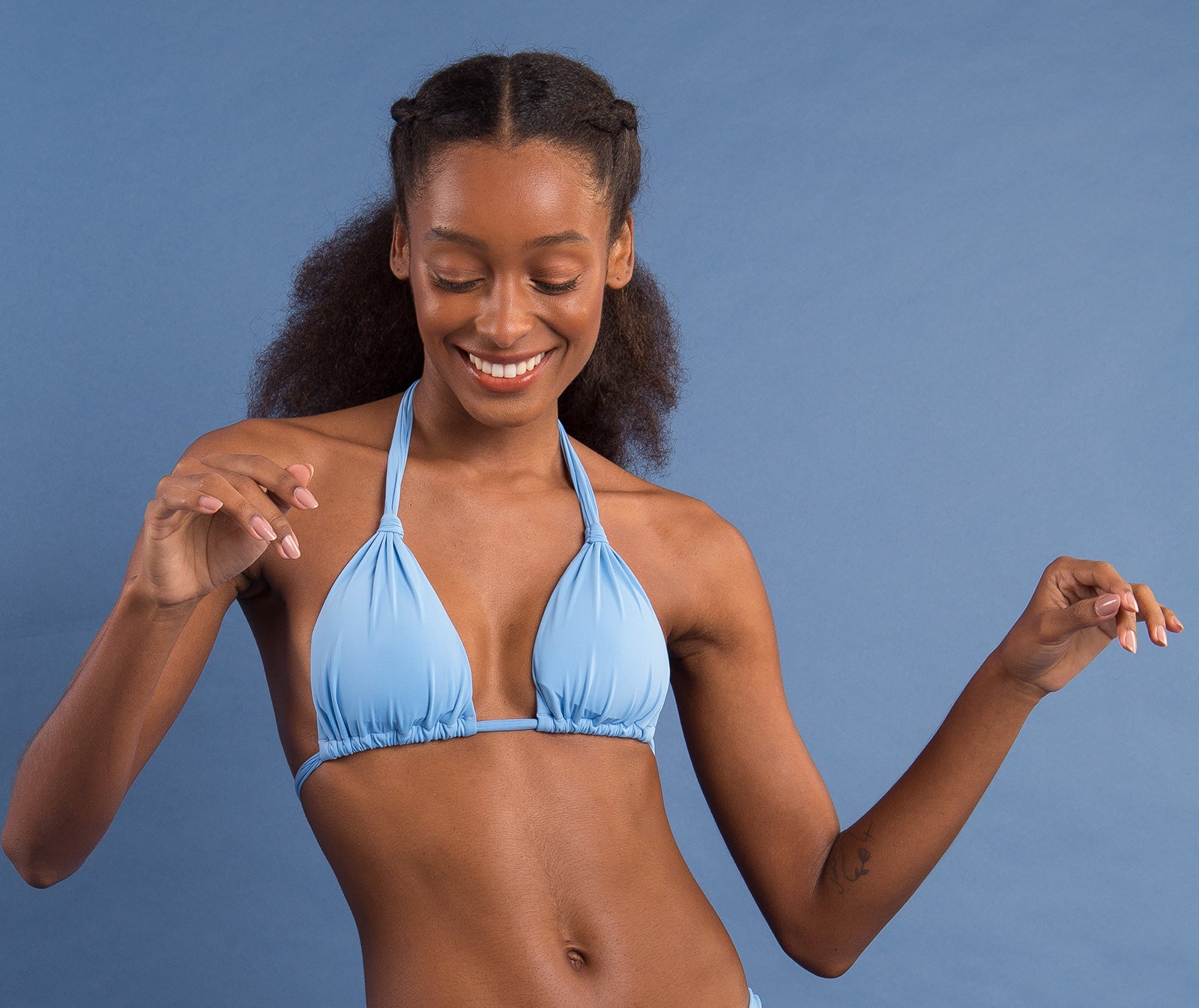 - Top style: Halter - Removable pad - Seamless